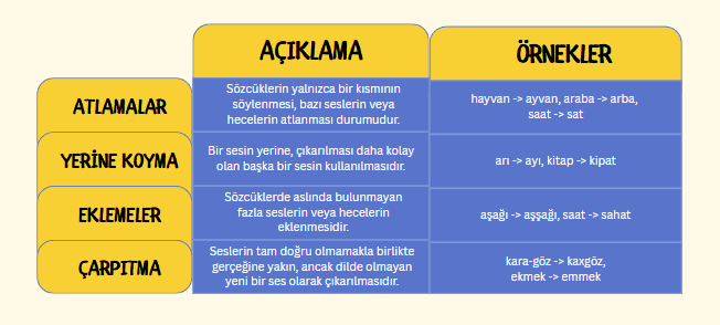 Artikülasyon (sesletim) bozuklukları, bu belirtilerin en yaygın olanlarıdır ve genellikle dört ana şekilde görülür.